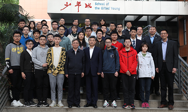 侯建國(guó)一行調(diào)研中國(guó)科大少年班并與師生代表合影