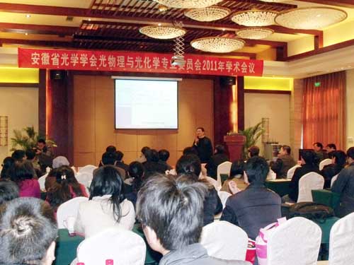 伴隨著新年臨近的腳步,12月11日~12日,安徽省光學(xué)學(xué)會第八屆理事會光物理與光化學(xué)專業(yè)委員會——2011年學(xué)術(shù)會議在巢湖市半湯召開。此次會議由光物理與光化學(xué)專業(yè)委員會主辦,安徽光機所承辦。來自安徽省高校和研究單位的90余位專家、學(xué)者和在學(xué)研究生參加了此次會議。