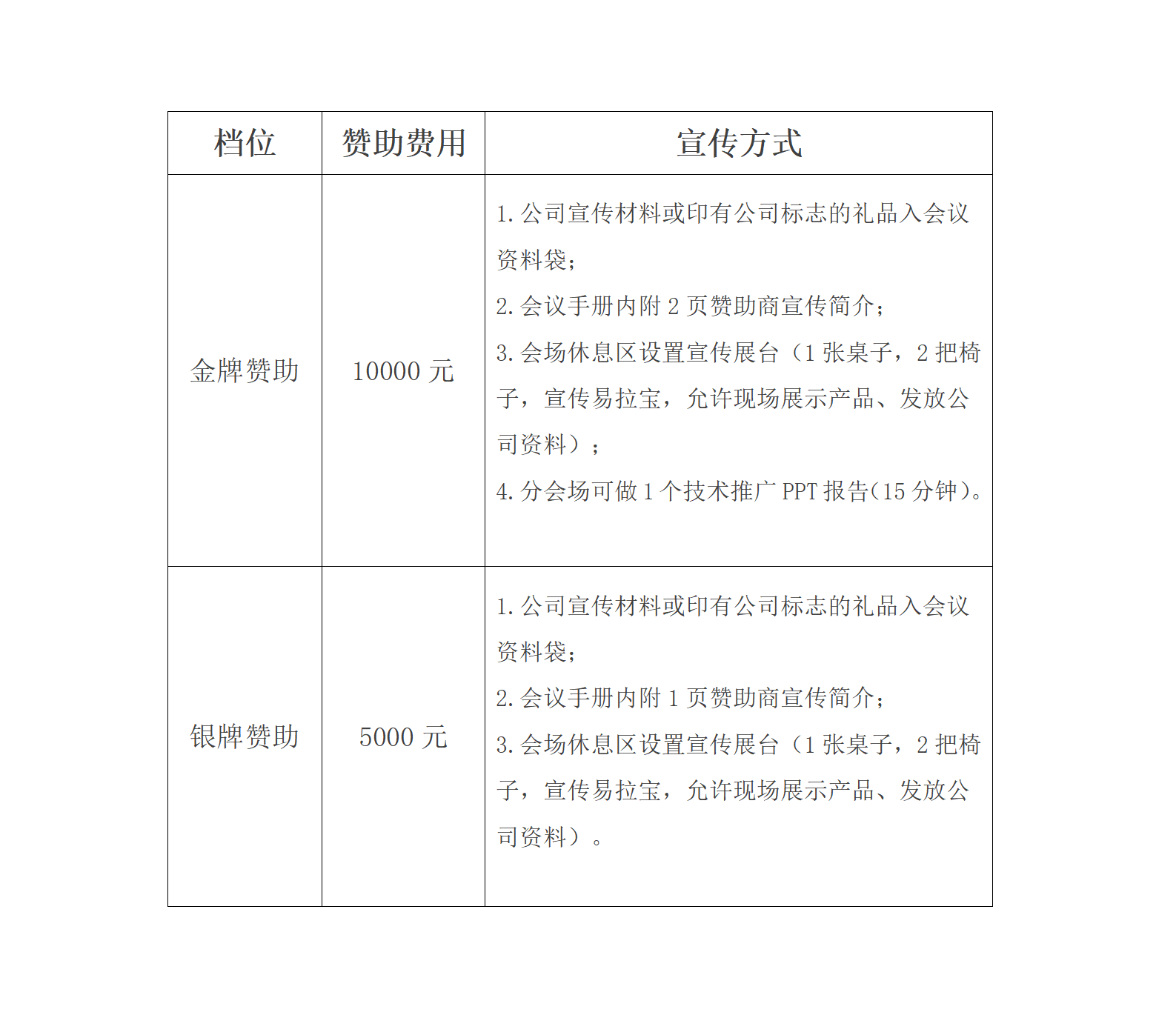 公司相關(guān)宣傳資料、印有公司標(biāo)志的禮品、易拉寶等由贊助商提供。贊助商如有其他合理要求,可與會務(wù)組協(xié)商。
