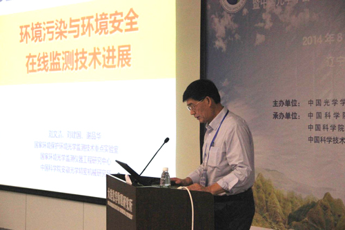 中科院大連化學(xué)物理研究所劉中民副所長和中科院合肥物質(zhì)科學(xué)研究院劉建國副院長分別為大會(huì)致歡迎詞。在劉建國研究員主持下,中科院安光所所長劉文清院士作了“環(huán)境污染與環(huán)境安全在線監(jiān)測(cè)技術(shù)進(jìn)展”,Markus Sigrist教授作了“Mid-infrared laser spectroscopic chemical sensing in environmental and medical applications”,陳衛(wèi)標(biāo)研究員、劉智深研究員、易帆教授、劉建國研究員、程水源教授和虞統(tǒng)高工分別作了“全光纖多普勒激光雷達(dá)技術(shù)研究”、“海洋激光雷達(dá)探測(cè)海洋光學(xué)參數(shù)”、“采用雙光柵的拉曼激光雷達(dá)”、“大氣細(xì)粒子監(jiān)測(cè)和觀測(cè)測(cè)量技術(shù)”、“大氣PM2.5來源解析新技術(shù)方法研究與示范應(yīng)用”和“關(guān)于大氣污染總量的幾點(diǎn)考慮”等邀請(qǐng)報(bào)告。