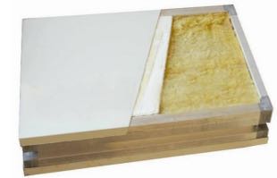 優(yōu)質彩色圖層鋼板為面層。用鍍鋅鋼帶為封邊件及加強筋,用防潮玻鎂板為芯板,巖棉為內芯層,通過加壓、加熱等工序制造而成。 優(yōu)點:平整度好、密封性能好、防火等級高。 缺點:成本高、重量重 |