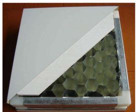面層采用彩鋼板,內夾鋁蜂窩芯材,采用手工制作工藝。四周采用鋁合金冷拉型框架或鐵質龍骨框。 優(yōu)點:重量輕、平直度好,因芯材采用獨特六邊形結構,具有高抗壓強度、張力好的優(yōu)勢。 缺點:價格高、保溫性一般。 |