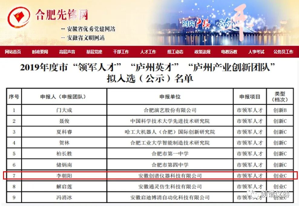 近日,經(jīng)過推薦申報(bào)、專家評審、答辯復(fù)評、實(shí)地考察、征求意見等程序,創(chuàng)譜儀器聯(lián)合創(chuàng)始人李朝陽博士脫穎而出,成功入選2019年度“合肥市領(lǐng)軍人才(創(chuàng)業(yè)型)”。