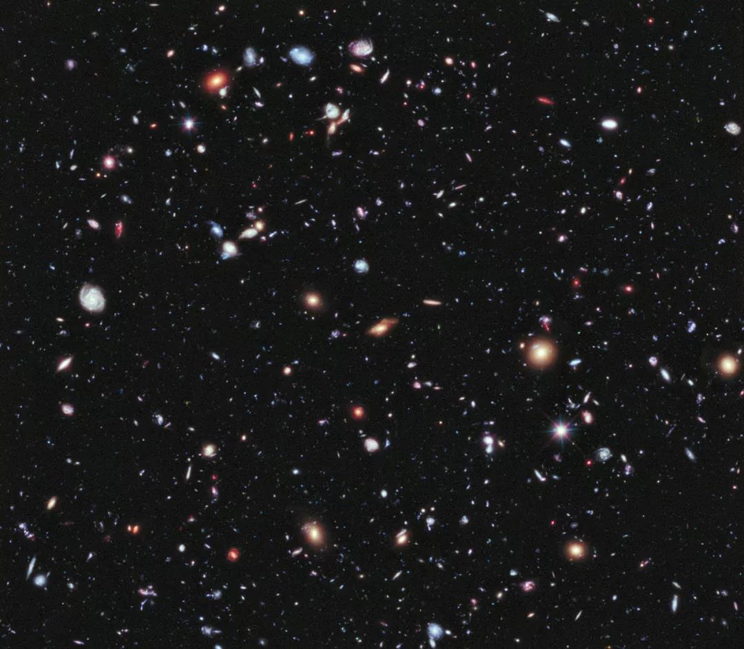 后來哈勃望遠鏡經(jīng)過幾次升級,拍攝了更深遠的照片——哈勃超深空(HUDF)。2009年,哈勃望遠鏡累計23天的曝光時間,得到了迄今為止最深遠的照片,哈勃極深場(XDF)。