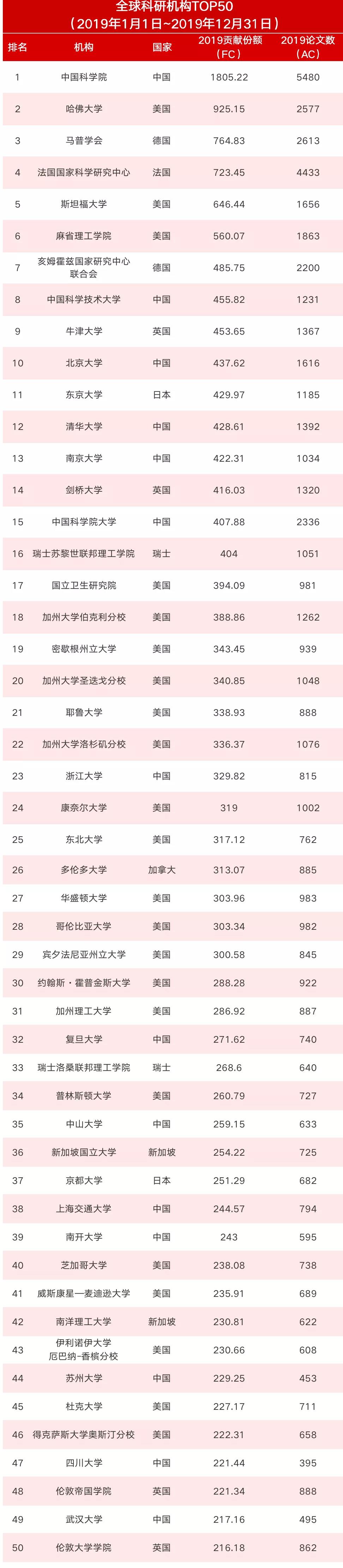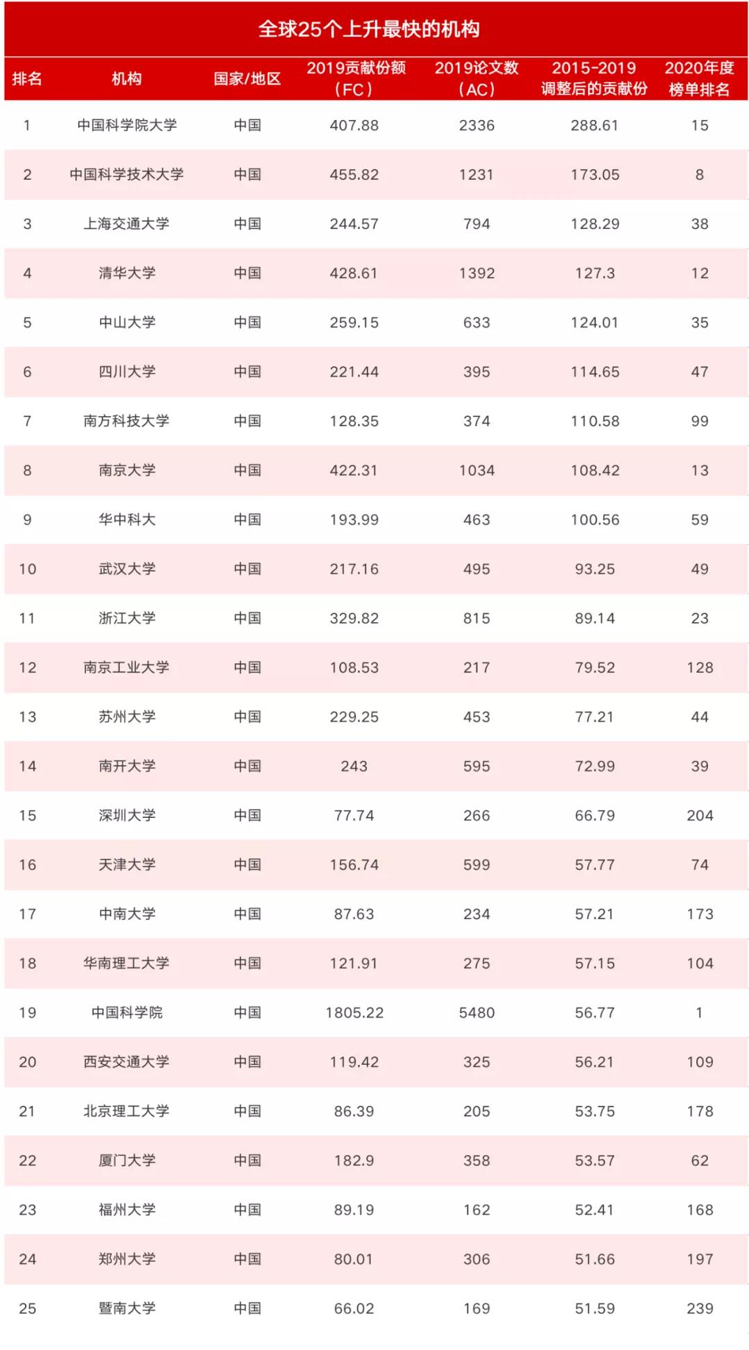 中國包攬全球上升最快的前44家機(jī)構(gòu)。