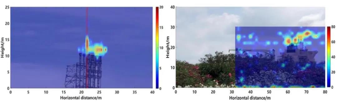 采用課題組研發(fā)的污染物二維分布成像遙測(cè)系統(tǒng)對(duì)重點(diǎn)排放源進(jìn)行觀測(cè),分別在2019年4月和6月對(duì)工業(yè)園區(qū)火炬排口、港口近海船舶排放的煙羽進(jìn)行了掃描測(cè)量,獲得了火炬排口和船舶排放的NO2、SO2二維分布信息,觀測(cè)結(jié)果如圖3所示。