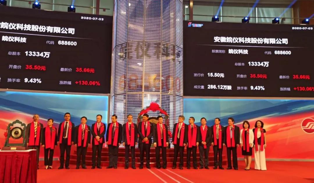 2020年7月3日上午,位于合肥高新區(qū)的安徽皖儀科技股份有限公司在上海證券交易所科創(chuàng)板鳴鑼上市,成為安徽省首家科創(chuàng)板上市企業(yè)。上海證券交易所副總經(jīng)理闕波,安徽地方金融監(jiān)管局局長、黨組書記何昌順,合肥市委常委、副市長王文松,合肥高新區(qū)工委書記、管委會主任宋道軍,中國科學(xué)院合肥物質(zhì)科學(xué)研究院院長劉建國,安徽皖儀科技股份有限公司董事長、總經(jīng)理臧牧等出席上市儀式。合肥市委常委、副市長王文松致辭。